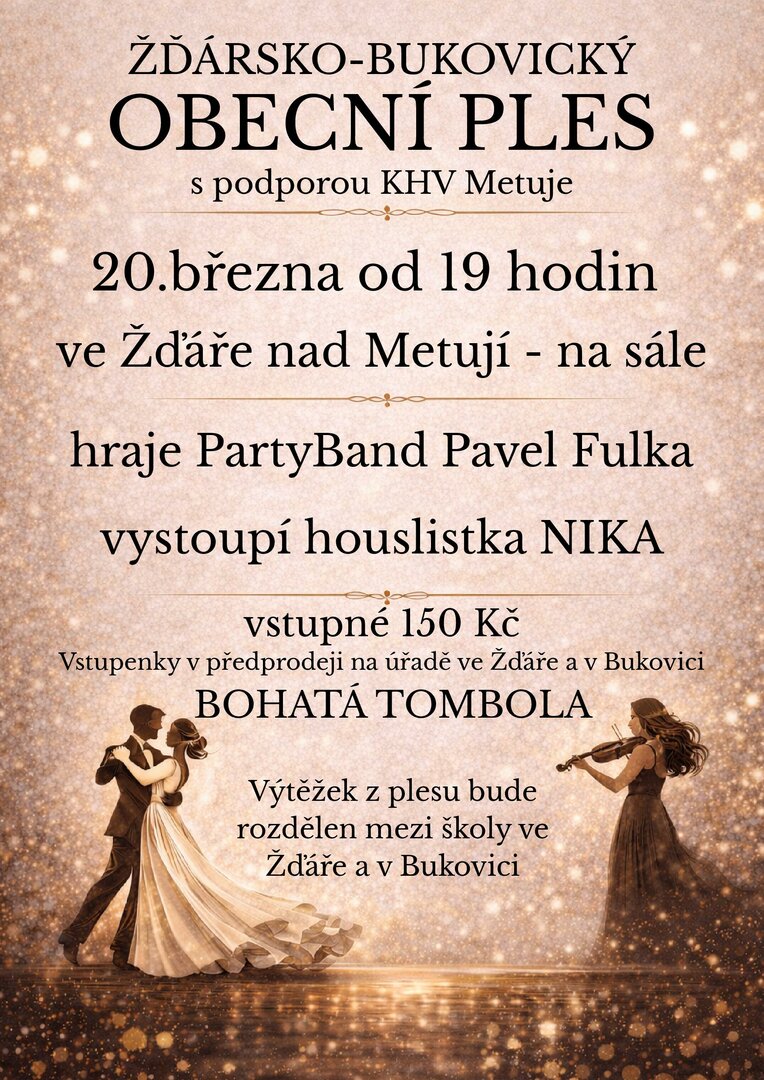 Předprodej vstupenek na úřadě ve Žďáře nad Metují a v Bukovici.