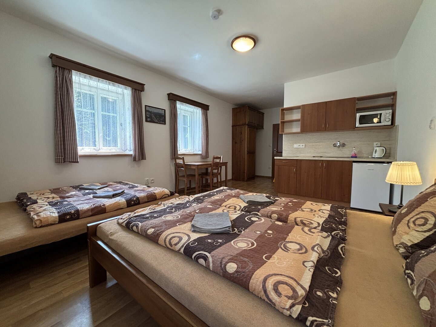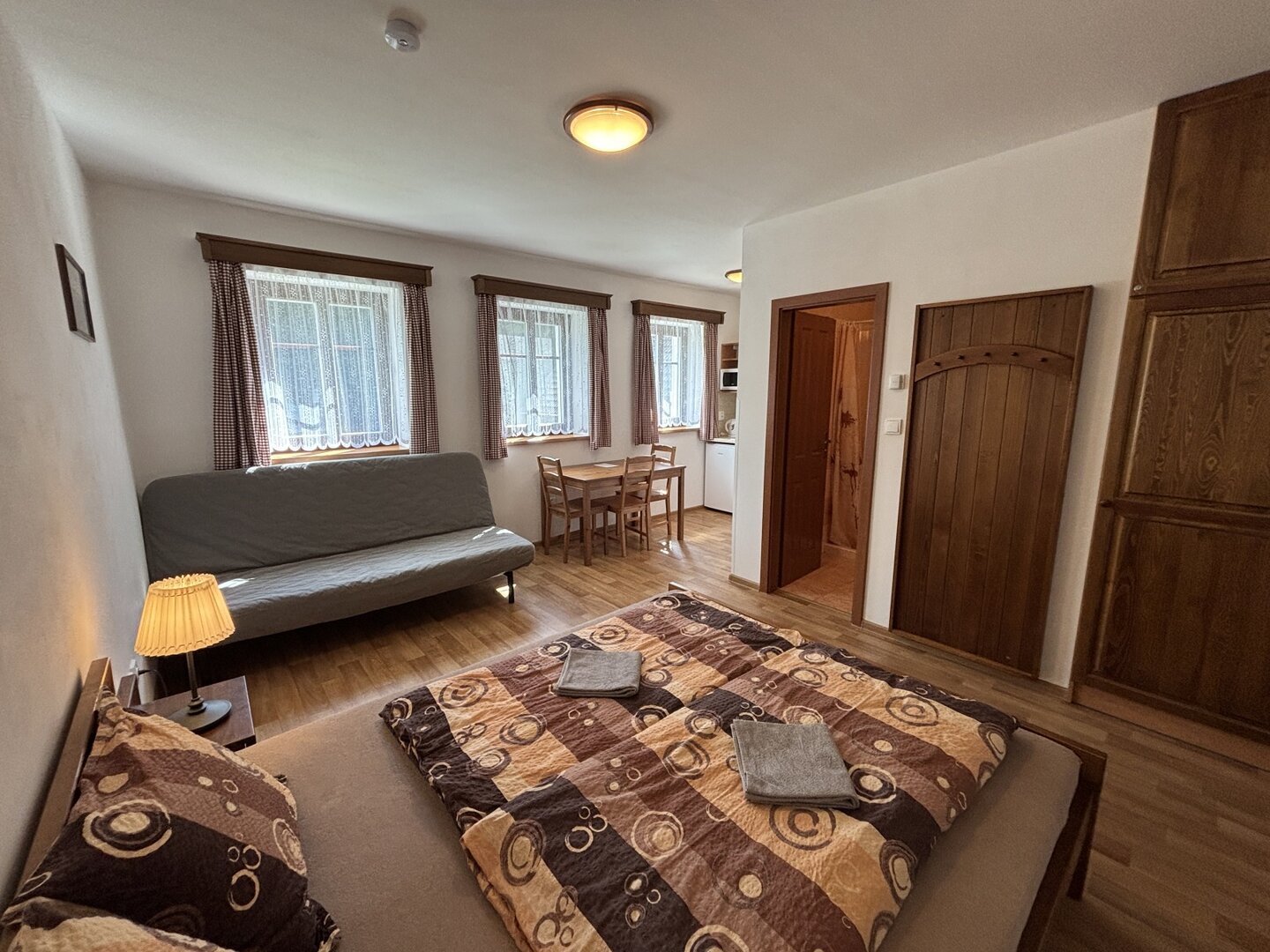 V penzionu je k dispozici 8 dvoulůžkových apartmánů s možností až dvou přistýlek. Všechny apartmány jsou plně vybavené. V přízemí penzionu se nachází společenská hala s krbem.